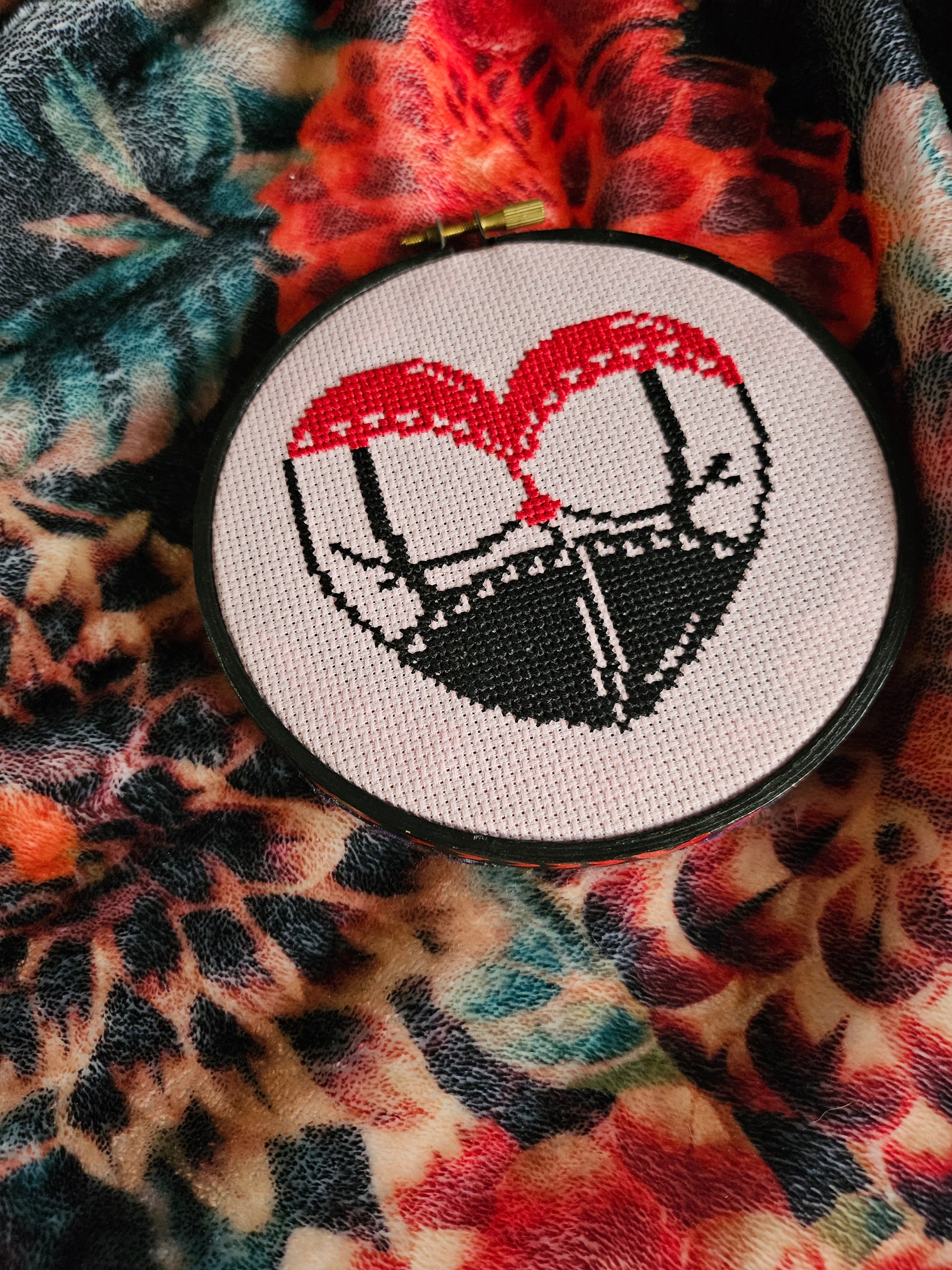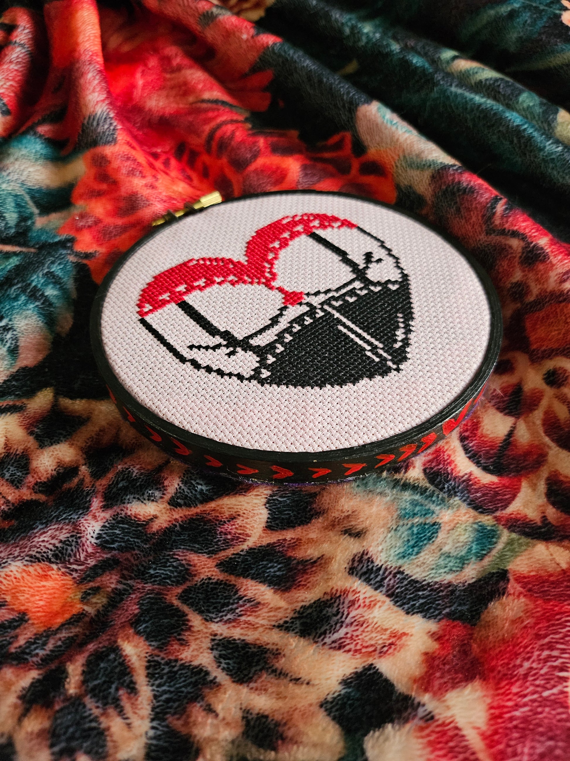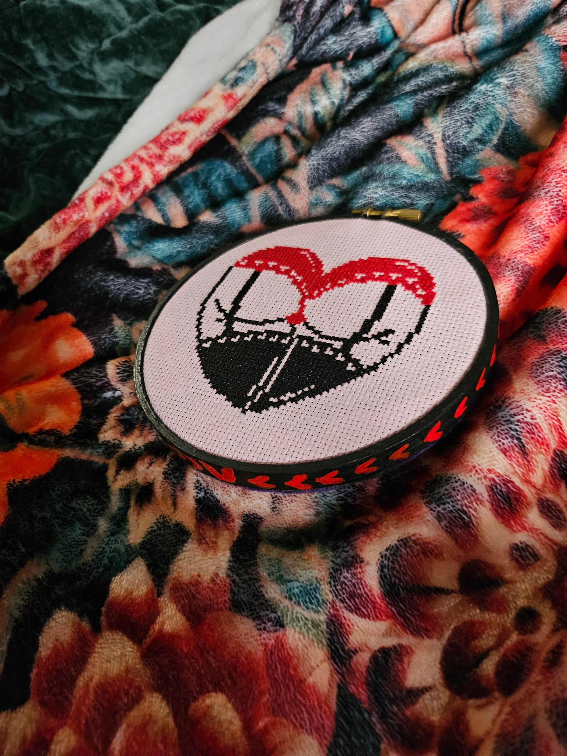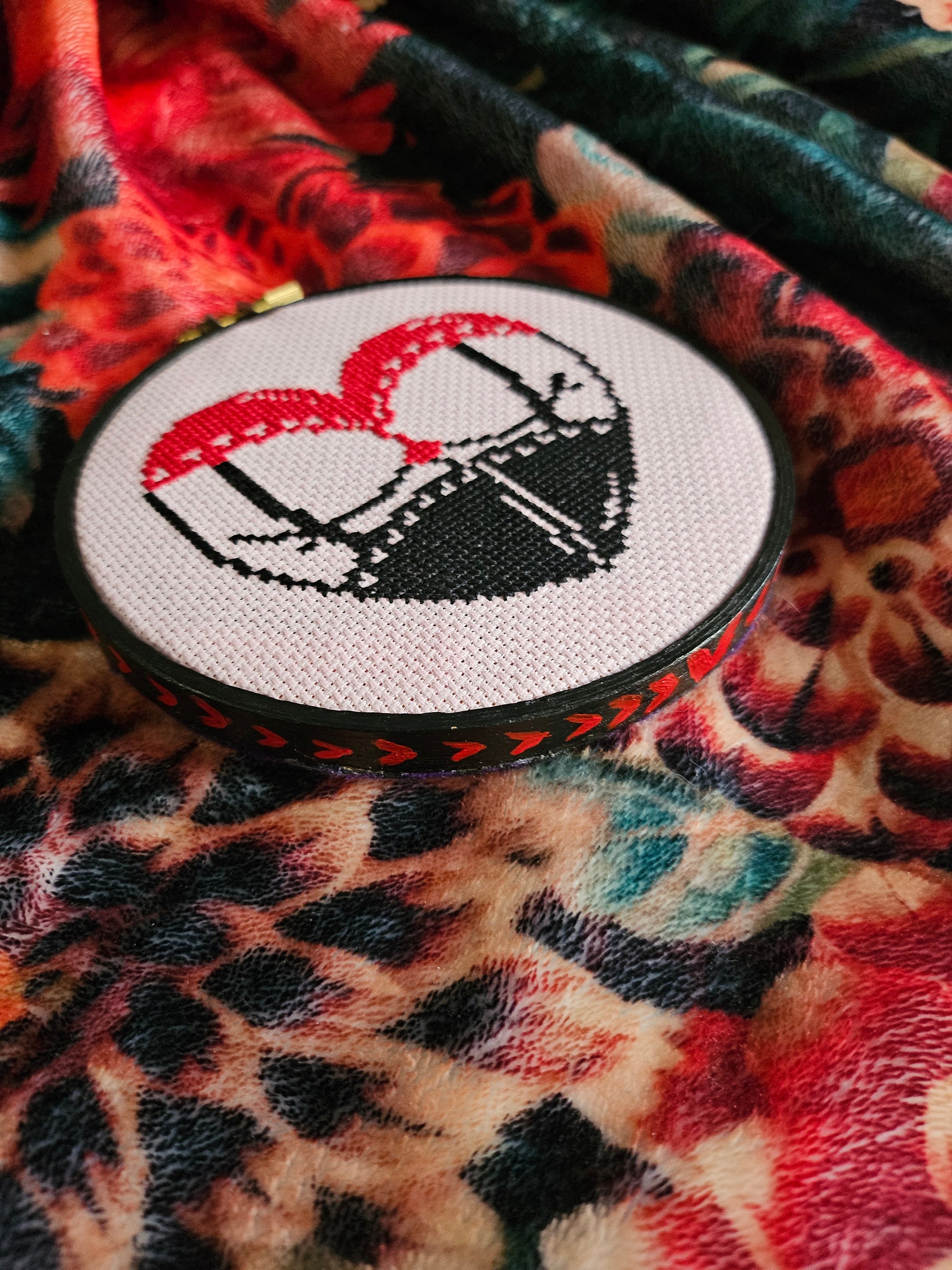 Sweet and spicy heart in a 4" hoop. Hand painted black frame with red hearts. Who says portals won't lead you some place a little wild š